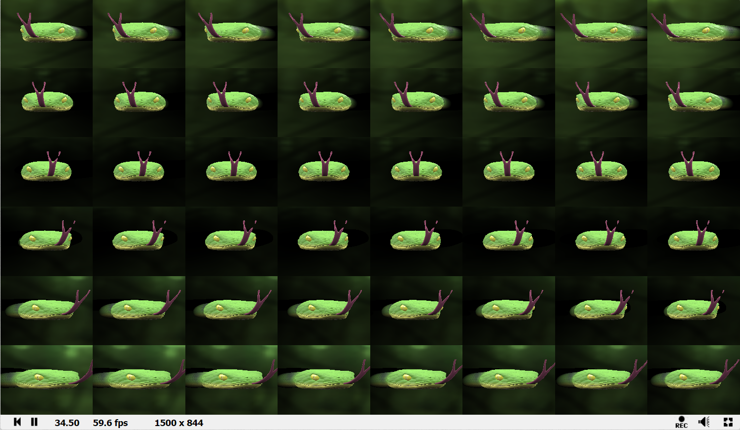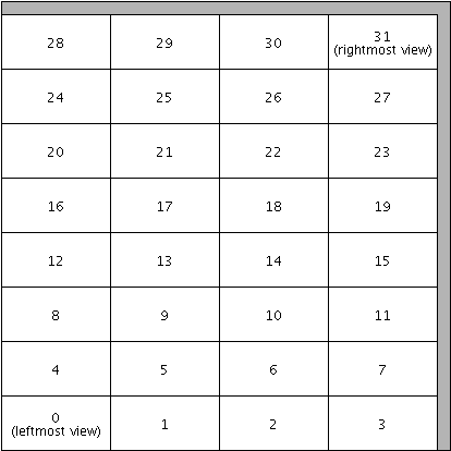 In order to have the best visual result, you should directly render a Quilt and not an RGB-D image. Quilts allow for better handling of depth and occlusions, but also lighting and specular highlights. In these examples we'll be using a technique called ray tracing to generate our images and then combine them into a quilt. A quilt is an array of 2D images, where the bottom left is the left-most image, and the top-right is the right-most image.